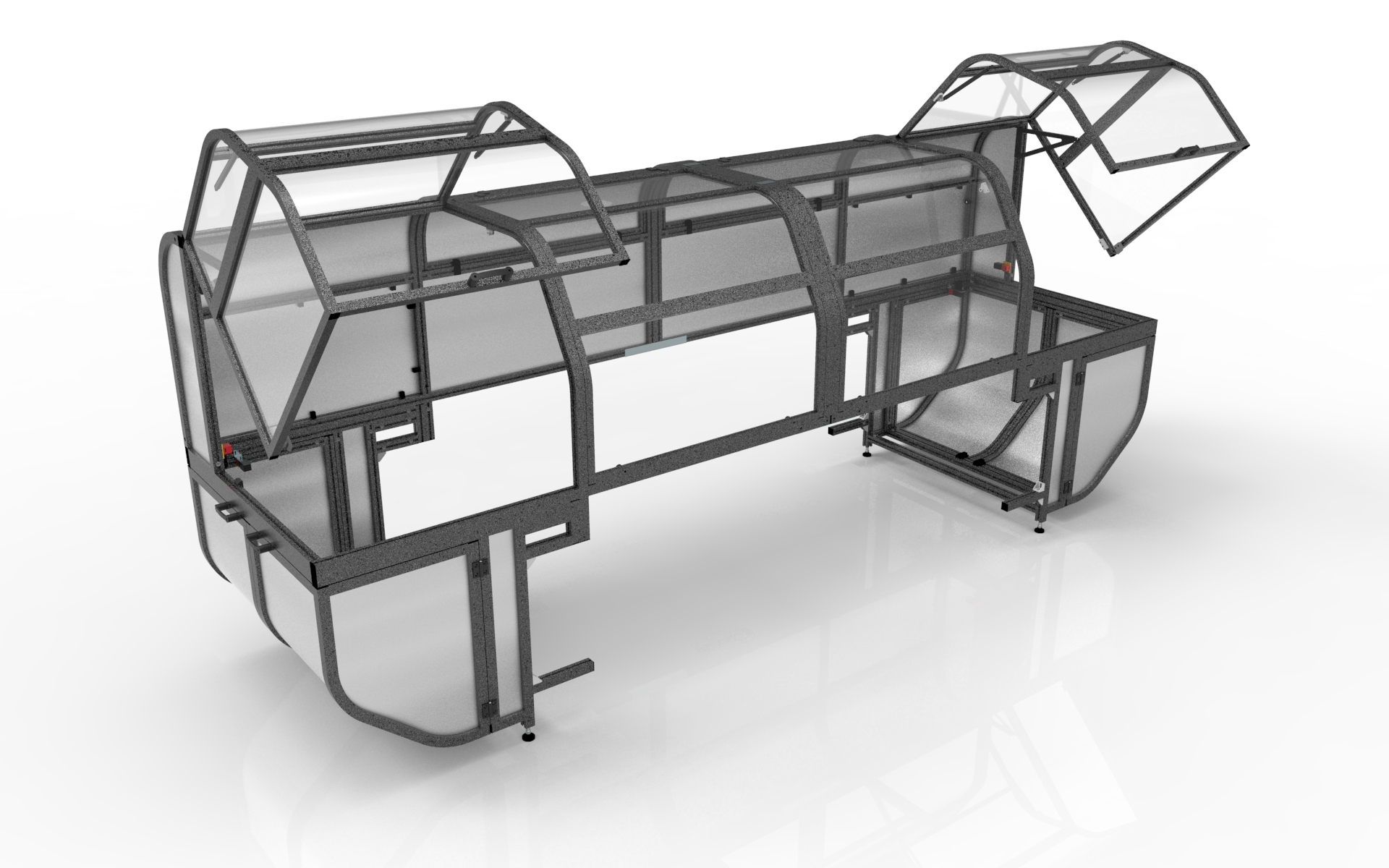Complete shelter with semi-transparent bronze smoked polycarbonate panels, slow release micro, open