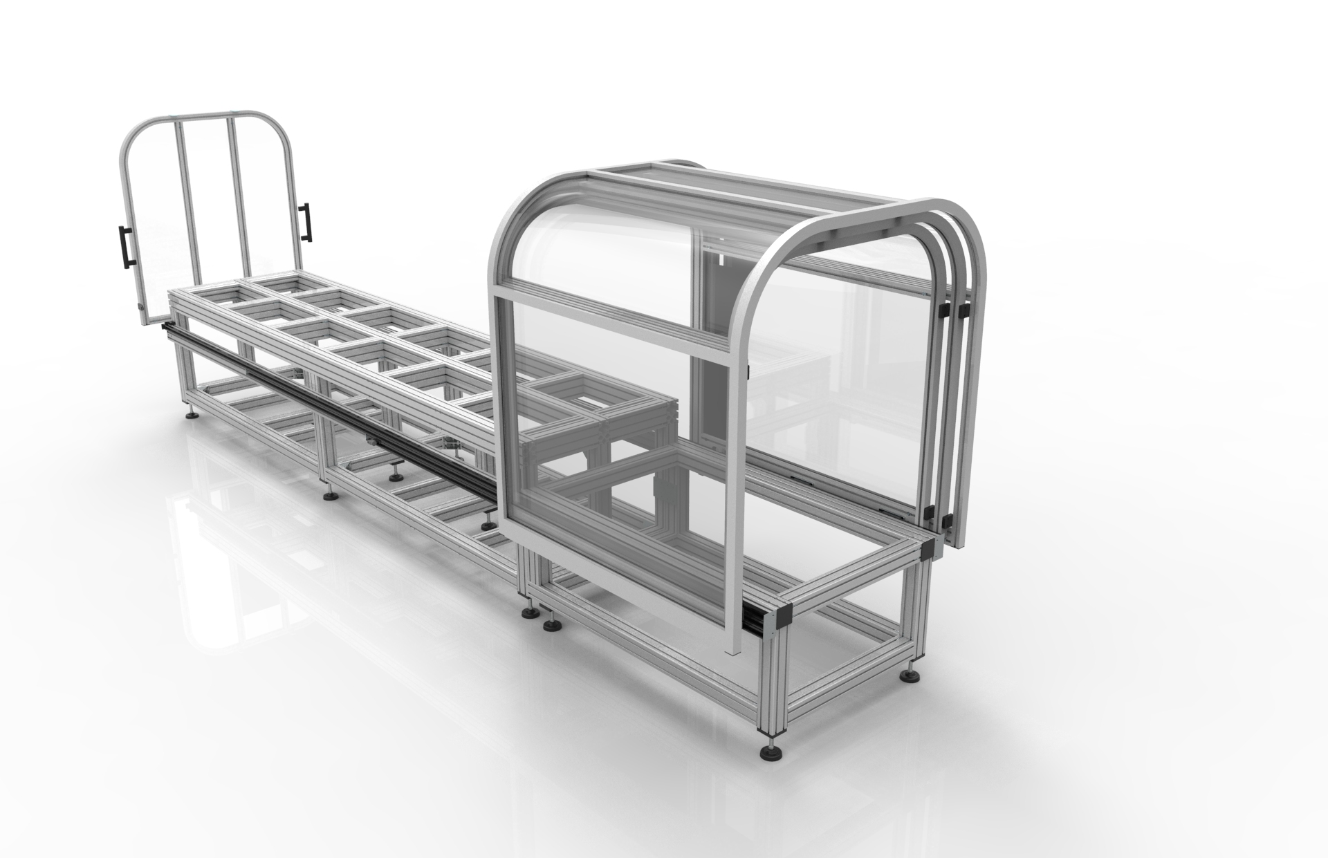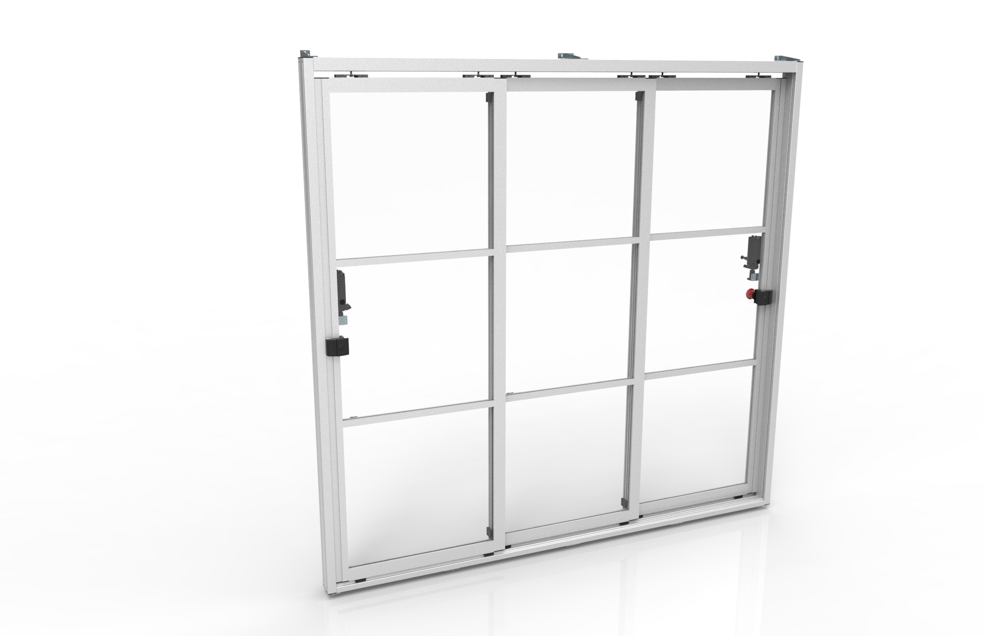 Telaio con riparo in profilati 18x32 e policarbonato, scorrevole aperto